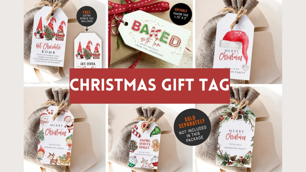 Merry Christmas Gift Tag Printable, Printable Christmas Gift Tag, Holiday Party Favor Tag, Editable Christmas Gift Tag Download, holiday tag